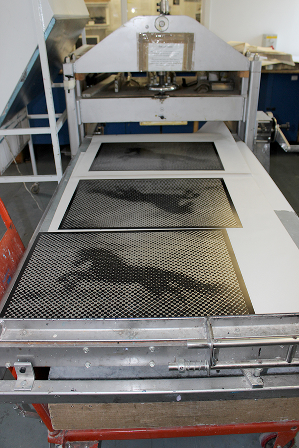 Frank-Fred, the Horse in two minds. Lino cut on steel, mixed media, music carousel. 2013