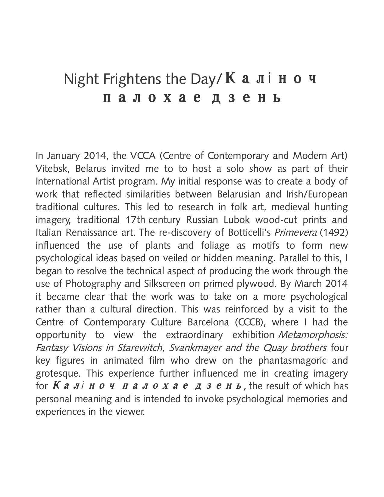 Night Frightens the Day:Калі ноч палохае дзень. Exhibtion text.